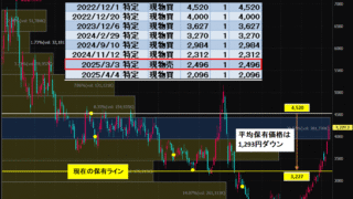 金が欲しい、金持ちになりたいって投資を始めたのに買った銘柄がさがったらパニック売りでは悲しい、その売りちょっと待って!『GAMANガマン我慢』、実際のチャートをつかい、どう買いさがったのかを分かりやすく